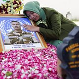 (Photo: Azila Farizal reacts next to the photograph of her husband, Farizal Rhomadhon, a United Nations Interim Force in Lebanon (UNIFIL) peacekeeper killed in Lebanon, after a funeral ceremony at Giripeni Heroes Cemetery complex in Kulon Progo regency, Yogyakarta, Indonesia, 5 April 5, 2026. Credit: Reuters/Dwi Oblo)