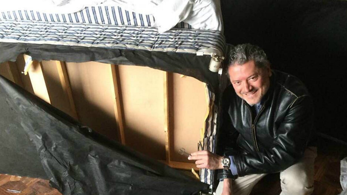 Image: Vasileios Vasileiou and the bed frame that saved his life