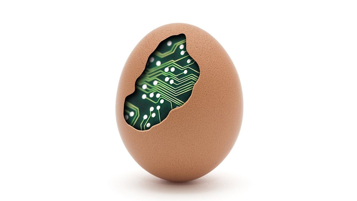(Picture: Cracked egg containing computer circuitry; Credit: sqback/Getty Images)