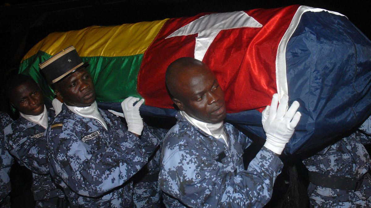 PHOTO: Togolese soldiers carrying the coffin of a victim of the attack (AFP/Getty Images).