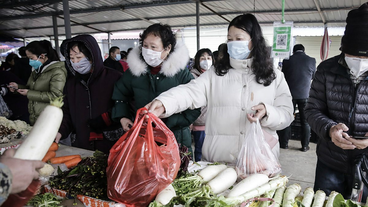 (Image: Wuhan Residents wear masks to buy vegetables in the market. Credit: Getty Images)