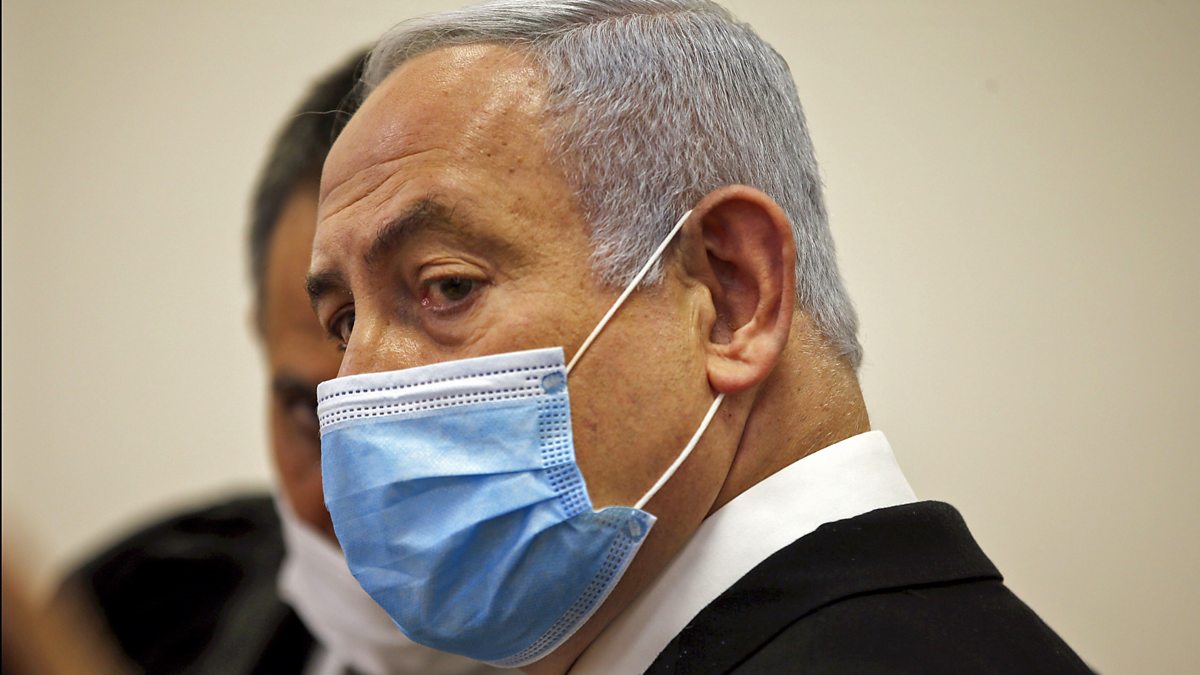 (Image: Israeli Prime Minister Benjamin Netanyahu, wearing a protective face mask, in court on corruption charges. Credit: Ronen Zvulun/Pool/AFP via Getty Images)