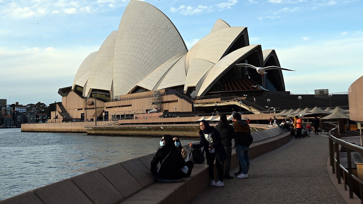 (Image: A group wearing face masks in front of the Sydney Opera House. Credit Saeed Khan/AFP via Getty Images)