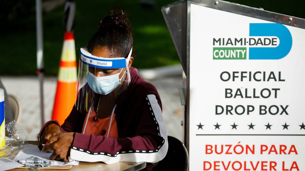 Image: Poll worker at a ballot drop box in Miami Beach, Florida