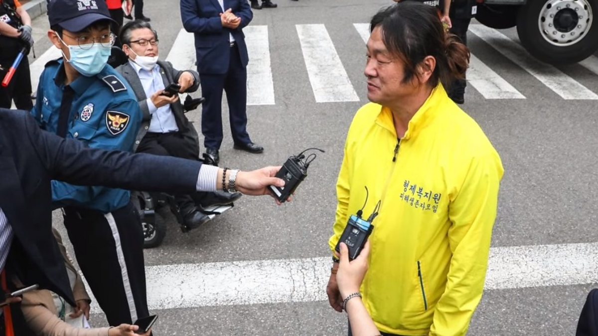 Photo: Seung-woo Choi talking to reporters. Credit BBC.