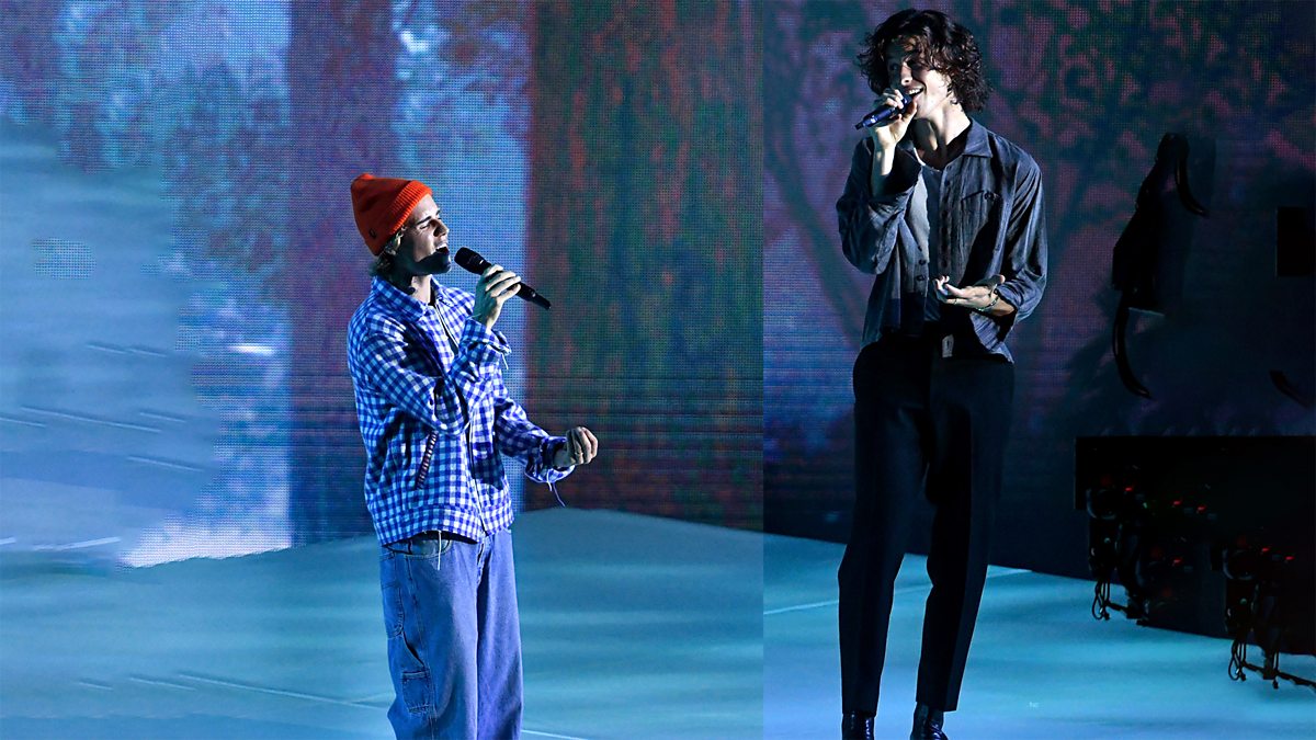 (Photo: Justin Bieber and Shawn Mendes perform at the 2020 American Music Awards, in Los Angeles. Credit: Kevin Winter/Getty Images)