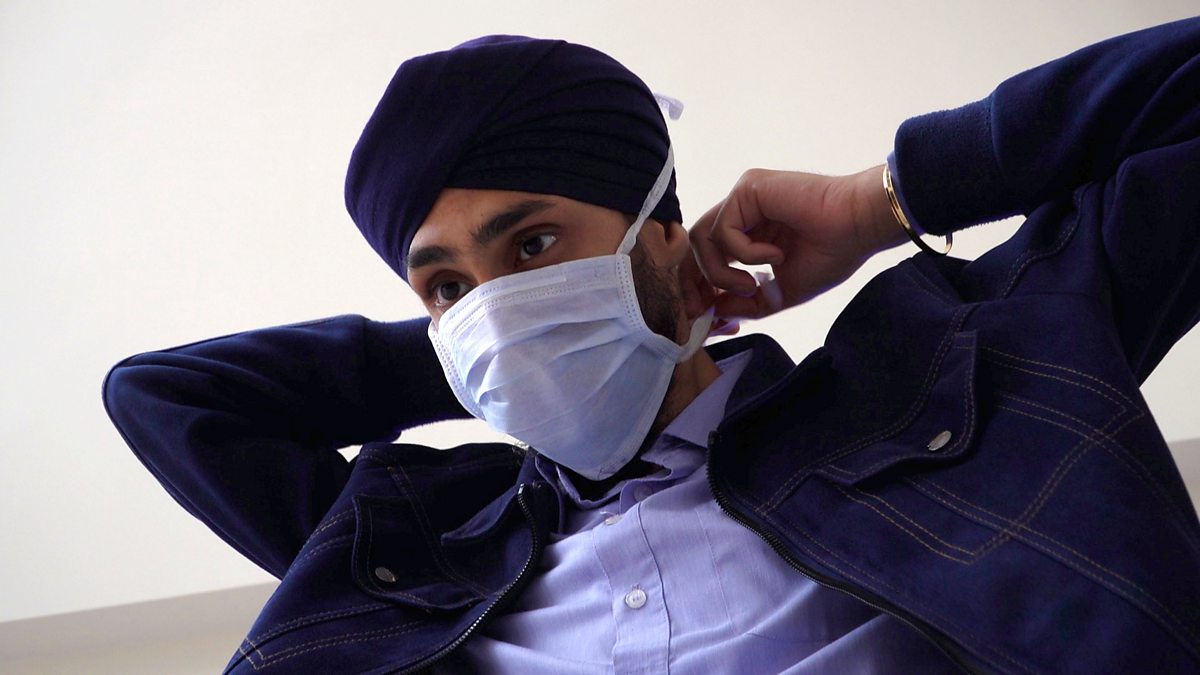(Image: Karanjee Singh prepares for his first visit to his Sikh Gurdwara since the Coronavirus meant it had to close / Credit: BBC)