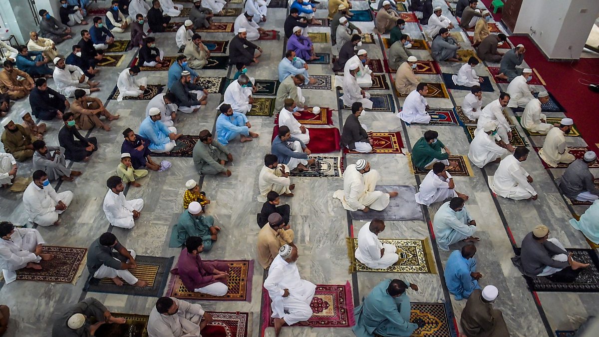 (Image: Muslim devotees offer prayers for the Eid al-Adha, at a mosque in Rawalpindi, Pakinstan on August 1, 2020. / Credit: FAROOQ NAEEM/AFP via Getty Images)