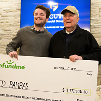 (Photo: Samual Weidenhofer giving a cheque for $1.77m to Ed Bambas. Credit: Katy Kildee/Detroit News/AP)