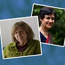 (Photo: Svetlana Alexievich and Kavery Nambisan. Alexievich on the left wears a green shirt, Nambisan on the right wears a blue and red sari. Credits: David Bullivant/BBC, Joseph Kozhithara)