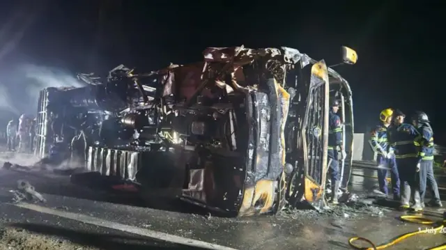 ਬੱਸ ਨੂੰ ਅੱਗ ਲੱਗਣ ਨਾਲ 25 ਮੌਤਾਂ: ‘ਅਸੀਂ ਯਾਤਰੀਆਂ ਦੀਆਂ ਚੀਕਾਂ ਸੁਣੀਆਂ, ਪਰ ਕੁਝ ਨਹੀਂ ਕਰ ਸਕੇ’