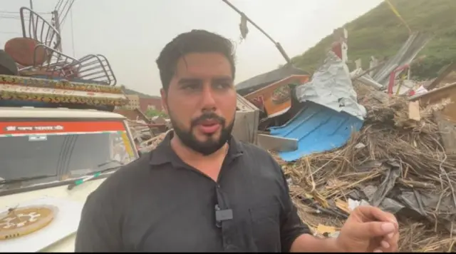 ਦੁਕਾਨ ਦੇ ਮਲਬੇ 'ਤੇ ਖੜ੍ਹੇ ਨਿਰਾਸ਼ ਵਕੀਲ ਖ਼ਾਨ ਨੇ ਕਿਹਾ, "ਜੇ ਸਾਨੂੰ ਸਮਾਂ ਦਿੱਤਾ ਜਾਂਦਾ ਤਾਂ ਅਸੀਂ ਸਾਮਾਨ ਕੱਢ ਲੈਂਦੇ। ਅਸੀਂ ਕਿਰਾਏਦਾਰ ਹਾਂ। ਸਾਡਾ ਕੀ ਕਸੂਰ ਸੀ?"