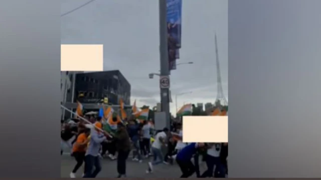 ਸੋਸ਼ਲ ਮੀਡੀਆ ਉਪਰ ਵਾਇਰਲ ਹੋਈਆਂ ਵੀਡੀਓ ਵਿੱਚ ਦਿਖਾਈ ਦੇ ਰਿਹਾ ਹੈ ਕਿ ਖ਼ਾਲਿਸਤਾਨੀ ਸਮਰੱਥਕ ਕਥਿਤ ਤੌਰ ਉਪਰ ਕੁਝ ਭਾਰਤੀ ਲੋਕਾਂ ਉਪਰ ਹਮਲਾ ਕਰ ਰਹੇ ਹਨ।