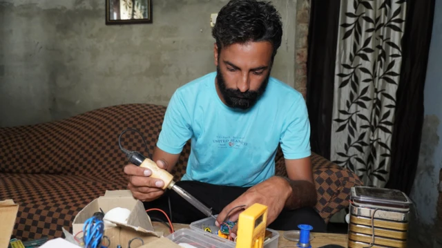 ਰਾਜਵਿੰਦਰ ਦੱਸਦੇ ਹਨ ਕਿ ਪਲਾਸਟਿਕ ਦੇ ਡੱਬੇ ਵਿੱਚ ਬੰਦ ਸਰਕਟ ਬੋਰਡ ਬਿਜਲੀ ਦੀ ਸਪਲਾਈ ਅਤੇ ਬੈਟਰੀ ਨਾਲ ਜੁੜਿਆ ਹੋਇਆ ਹੈ। ਇਸ ਨਾਲ ਇੱਕ ਹੂਟਰ ਵੀ ਲੱਗਿਆ ਹੋਇਆ ਹੈ।