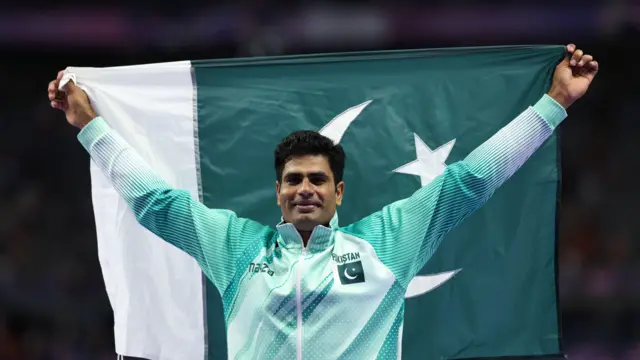 ਪਾਕਿਸਤਾਨ ਦੇ ਅਰਸ਼ਦ ਨਦੀਮ ਨੇ ਪੈਰਿਸ ਓਲੰਪਿਕ 'ਚ ਜੈਵਲਿਨ ਥਰੋਅ ਮੁਕਾਬਲੇ 'ਚ ਨਵਾਂ ਓਲੰਪਿਕ ਰਿਕਾਰਡ ਕਾਇਮ ਕਰ ਕੇ ਨਾ ਸਿਰਫ਼ ਸੋਨ ਤਮਗਾ ਜਿੱਤਿਆ, ਸਗੋਂ ਇਨ੍ਹਾਂ ਵਿਸ਼ਵ ਖੇਡਾਂ 'ਚ ਤਗਮੇ ਲਈ ਪਾਕਿਸਤਾਨੀ ਦੇਸ਼ ਦੀ ਤਿੰਨ ਦਹਾਕਿਆਂ ਦੀ ਲੰਬੀ ਉਡੀਕ ਨੂੰ ਵੀ ਖ਼ਤਮ ਕਰ ਦਿੱਤਾ।