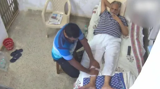ਸੋਸ਼ਲ ਮੀਡੀਆ ਉਪਰ ਸ਼ੇਅਰ ਕੀਤੀਆਂ ਜਾ ਰਹੀਆਂ ਵੱਖ-ਵੱਖ ਵੀਡੀਓਜ਼ ਵਿੱਚ ਇੱਕ ਵਿਅਕਤੀ ਜਤਿੰਦਰ ਜੈਨ ਦੇ ਸਿਰ ਦੀ ਮਾਲਿਸ਼ ਕਰਦਾ ਅਤੇ ਪੈਰ ਦਵਾਉਂਦਾ ਦੇਖਿਆ ਜਾ ਸਕਦਾ ਹੈ।