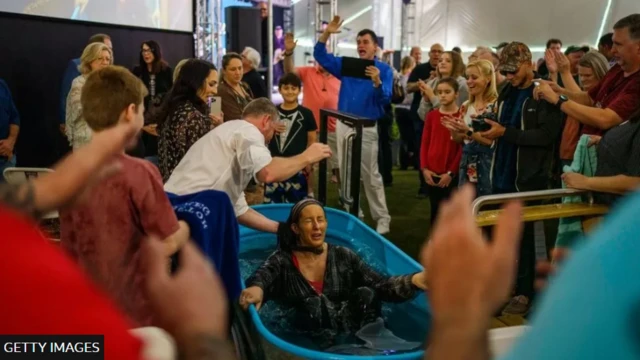 ਇਸ ਤੋਂ ਬਾਅਦ ਕਰੀਬ 20 ਲੋਕਾਂ ਨੂੰ ਇੱਕ ਪਾਣੀ ਵਾਲੀ ਖੁਰਲੀ ਅੰਦਰ ਬੈਪਟਾਈਜ਼ (‘ਸ਼ੁੱਧ’) ਕੀਤਾ ਗਿਆ।