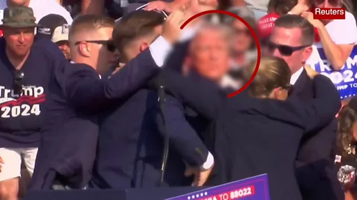 ਵੀਡੀਓ ਵਿੱਚ ਦੇਖਿਆ ਜਾ ਸਕਦਾ ਹੈ ਕਿ ਟਰੰਪ ਜ਼ਮੀਨ ਉੱਤੇ ਡਿੱਗੇ ਅਤੇ ਫਿਰ ਜਦੋਂ ਉੱਠੇ ਤਾਂ ਉਨ੍ਹਾਂ ਦੇ ਇੱਕ ਪਾਸੇ ਖੂਨ ਲੱਗਿਆ ਹੋਇਆ ਸੀ।