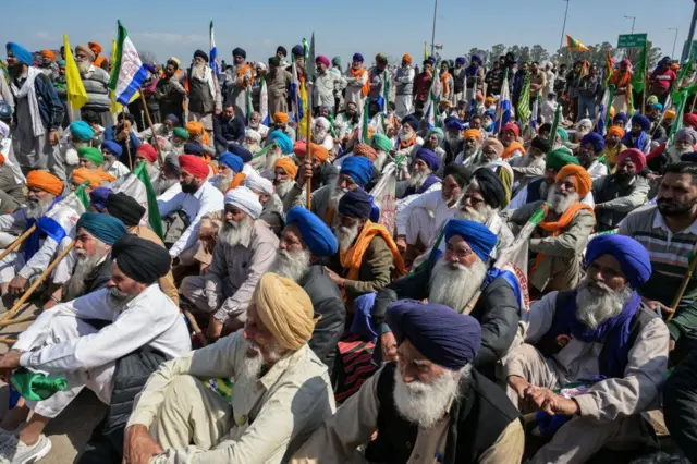 ਕਿਸਾਨ ਘੱਟੋ-ਘੱਟ ਸਮਰਥਨ ਮੁੱਲ ਨੂੰ ਕਾਨੂੰਨੀ ਗਾਰੰਟੀ ਬਣਾਉਣ ਸਮੇਤ ਕੁਝ ਹੋਰ ਮੰਗਾਂ ਨੂੰ ਲੈ ਕੇ ਕੇਂਦਰ ਸਰਕਾਰ ਖ਼ਿਲਾਫ਼ ਪ੍ਰਦਰਸ਼ਨ ਕਰ ਰਹੇ ਹਨ