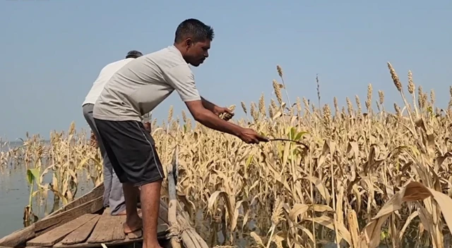 ਇਨ੍ਹਾਂ ਕਿਸਾਨਾਂ ਨੂੰ 8 ਫੁੱਟ ਡੂੰਘੇ ਪਾਣੀ ਵਿੱਚ ਲੱਗੀ ਫ਼ਸਲ ਕਿਸ਼ਤੀ 'ਤੇ ਕਿਉਂ ਵੱਢਣੀ ਪੈਂਦੀ ਹੈ
