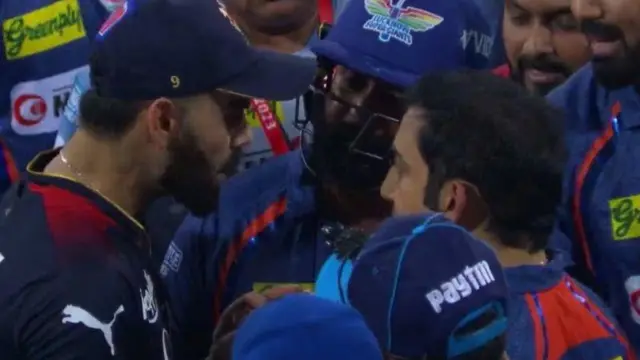 ਸਭ ਤੋਂ ਚਰਚਿਤ ਘਟਨਾ 'ਚ, ਮੈਚ ਤੋਂ ਬਾਅਦ ਵਿਰਾਟ ਕੋਹਲੀ ਲਖਨਊ ਦੇ ਬੱਲੇਬਾਜ਼ ਕਾਇਲ ਮਾਇਰਸ ਨਾਲ ਸੈਰ ਕਰਦੇ ਅਤੇ ਗੱਲਾਂ ਕਰਦੇ ਨਜ਼ਰ ਆ ਰਹੇ ਹਨ। ਫਿਰ ਗੌਤਮ ਗੰਭੀਰ ਆਉਂਦੇ ਹਨ ਅਤੇ ਮਾਇਰਸ ਦਾ ਹੱਥ ਫੜ ਕੇ ਆਪਣੇ ਨਾਲ ਲੈ ਜਾਂਦੇ ਹਨ।