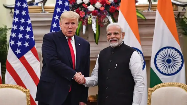 ਅਮਰੀਕੀ ਰਾਸ਼ਟਰਪਤੀ ਡੌਨਲਡ ਟਰੰਪ ਨੇ ਕਿਹਾ ਹੈ ਕਿ ਭਾਰਤ ਅਤੇ ਅਮਰੀਕਾ ਮਿੱਤਰ ਹਨ ਪਰ ਪਿਛਲੇ ਕਈ ਸਾਲਾਂ ਤੋਂ ਉਨ੍ਹਾਂ ਨਾਲ ਬਹੁਤ ਘੱਟ ਵਪਾਰ ਹੋ ਰਿਹਾ ਸੀ ਕਿਉਂਕਿ ਉਨ੍ਹਾਂ ਨੇ ਬਹੁਤ ਜ਼ਿਆਦਾ ਟੈਰਿਫ ਲਗਾਏ ਹੋਏ ਹਨ ਜੋ ਕਿ ਦੁਨੀਆ ਵਿੱਚ ਸਭ ਤੋਂ ਵੱਧ ਹਨ।