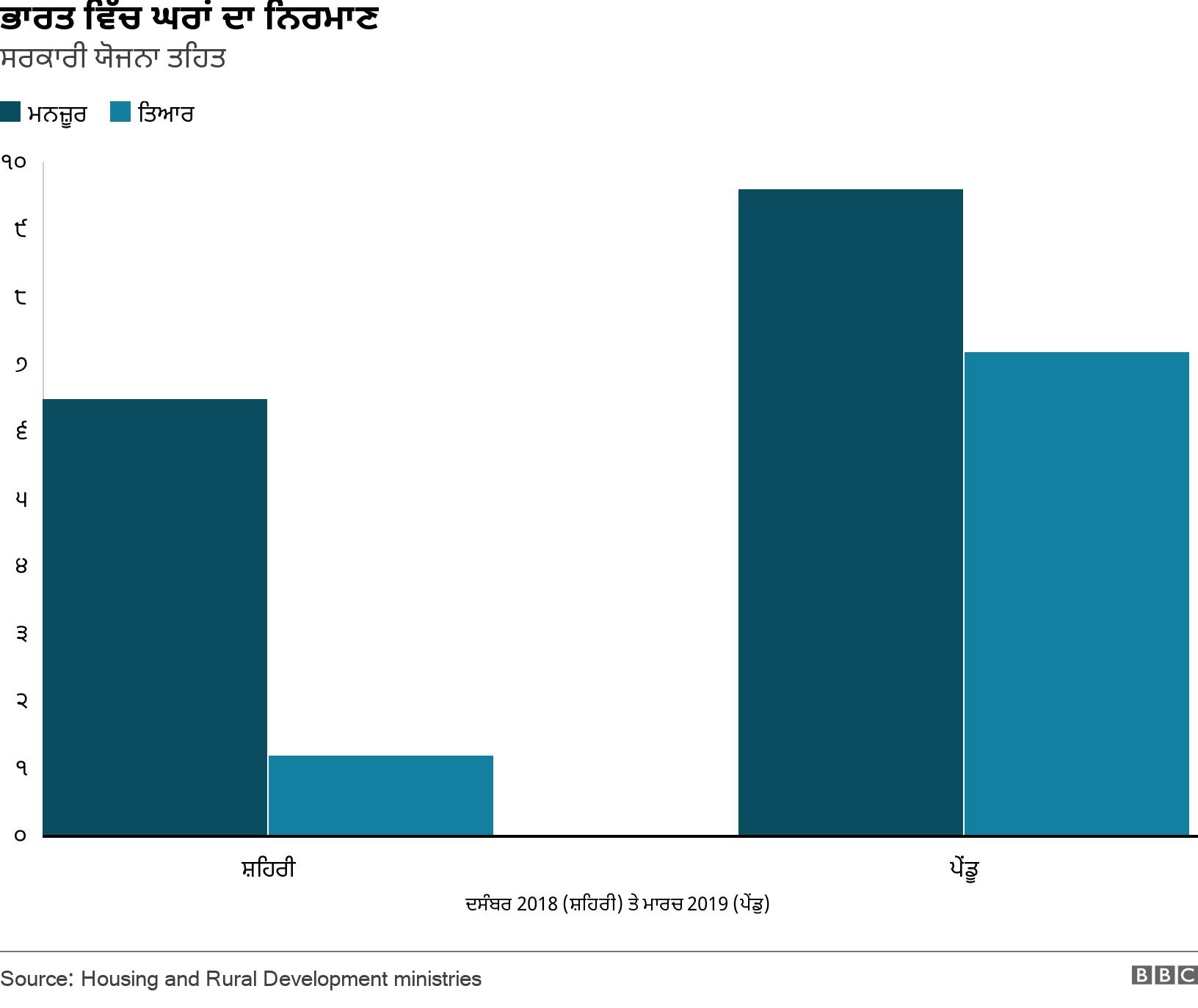 ਅਧਿਕਾਰਤ ਅੰਕੜੇ ਦੱਸਦੇ ਹਨ ਕਿ ਦਸੰਬਰ 2018 ਤੱਕ 65 ਲੱਖ ਘਰਾਂ ਨੂੰ ਮਨਜ਼ੂਰੀ ਮਿਲ ਗਈ ਸੀ।