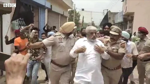 ਕਿਸਾਨਾਂ ਨੇ ਉਕਤ ਦੋਵੇਂ ਆਗੂਆਂ ਨਾਲ ਧੱਕਾ-ਮੁੱਕੀ ਕੀਤੀ ਅਤੇ ਪਾਣੀ ਦੀਆਂ ਬੋਤਲਾਂ ਮਾਰੀਆਂ।