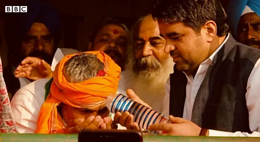ਇਸ ਦੀ ਜ਼ਿੰਮੇਵਾਰੀ ਚੁੱਕਣ ਵਾਲੇ ਨਿਹੰਗ ਅਮਨ ਸਿੰਘ ਦੀਆਂ ਕੇਂਦਰੀ ਖੇਤੀ ਮੰਤਰੀ ਨਰਿੰਦਰ ਸਿੰਘ ਤੋਮਰ ਨਾਲ ਤਸਵੀਰਾਂ ਵੀ ਕਾਫ਼ੀ ਵਿਵਾਦ ਦਾ ਕਾਰਨ ਬਣੀਆਂ।