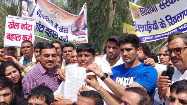 ''ਅਸੀਂ 25 ਮਾਰਚ ਨੂੰ ਹਿਸਾਰ ਵਿੱਚ ਖੇਡ ਕੋਟੇ ਦੀਆਂ ਨੌਕਰੀਆਂ ਦੇ ਮੁੱਦੇ 'ਤੇ ਇੱਕ ਹੋਰ ਪ੍ਰਦਰਸ਼ਨ ਕਰਾਂਗੇ।"