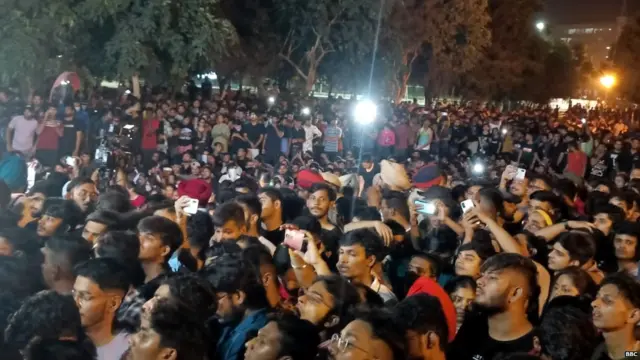 - ਵਿਦਿਆਰਥੀਆਂ ਦਾ ਵੱਡਾ ਇਕੱਠ ਇਨਸਾਫ਼ ਲਈ ਨਾਅਰੇਬਾਜ਼ੀ ਕਰ ਰਿਹਾ ਹੈ ਤੇ ਪੁਲਿਸ ਕਾਰਵਾਈ ਉੱਤੇ ਸਵਾਲ ਚੁੱਕ ਰਿਹਾ ਹੈ।