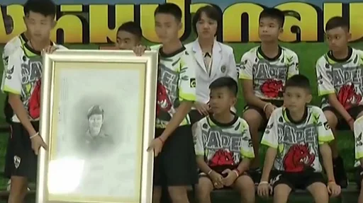 ਇਹ ਬੱਚੇ ਆਪਣੀ ਫੁੱਟਬਾਲ ਖੇਡਣ ਵਾਲੀ ਵਰਦੀ ਪਾਕੇ ਥਾਈ ਨੇਵੀ ਸੀਲਜ਼ ਦੇ ਉਨ੍ਹਾਂ ਜਵਾਨਾਂ ਨਾਲ ਮੰਚ ਉੱਤੇ ਆਏ ਜਿਨ੍ਹਾਂ ਨੇ ਇਨ੍ਹਾਂ ਨੂੰ ਬਚਾਇਆ ਹੈ।