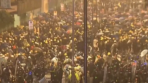ਕਿਸੇ ਨੇ ਚਿੱਲਾ ਕੇ ਕਿਹਾ, "ਹਾਂਗਕਾਂਗ ਪੁਲਿਸ ਜਾਣਦੇ ਹੋਏ ਵੀ ਕਾਨੂੰਨ ਤੋੜਦੀ ਹੈ।"