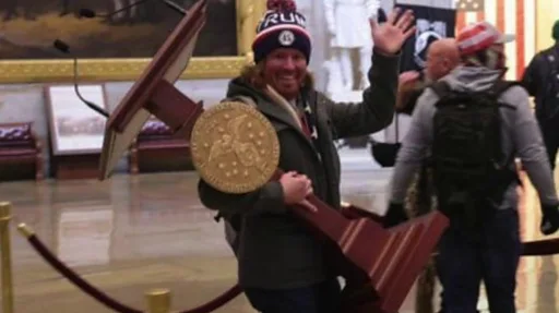 ਉਸ ਦਾ ਪਛਾਣ ਜੈਕ ਐਂਜੇਲੀ ਵਜੋਂ ਹੋਈ ਹੈ ਅਤੇ ਉਹ ਬੇਬੁਨਿਆਦ ਸਾਜਿਸ਼ ਦੇ ਦਾਅਵੇ ਕਰਨ ਵਾਲੇ ਕੁਆਨਨ ਵਜੋਂ ਮਸ਼ਹੂਰ ਹਨ। ਉਹ ਆਪਣੇ ਆਪ ਨੂੰ ਕੁਆਨਨ ਸ਼ਮਨ ਮੰਨਦੇ ਹਨ।