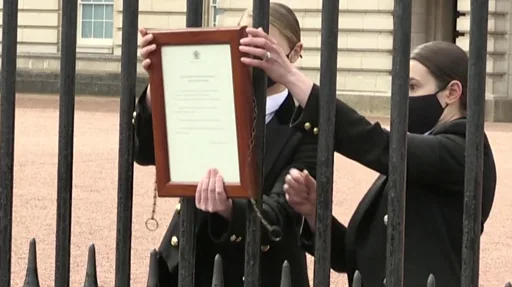 ਬਕਿੰਘਮ ਪੈਲਸ ਵਿੱਚ ਝੰਡਾ ਹੇਠਾਂ ਝੁਕਾ ਦਿੱਤਾ ਗਿਆ ਹੈ ਅਤੇ ਡਿਊਕ ਦੀ ਮੌਤ ਦੇ ਐਲਾਨ ਤੋਂ ਬਾਅਦ ਗੇਟਾਂ 'ਤੇ ਨੋਟਿਸ ਲਗਾ ਦਿੱਤੇ ਗਏ ਹਨ।