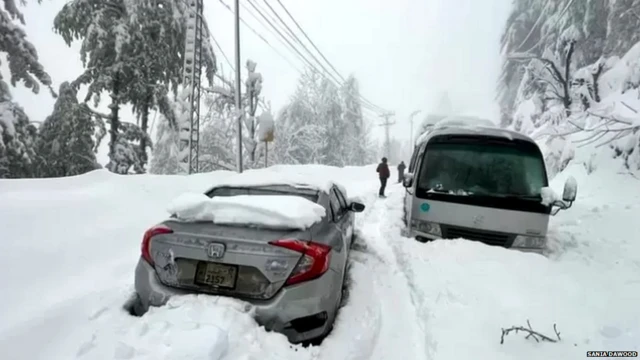 ਪਾਕਿਸਤਾਨੀ ਪੰਜਾਬ ਦੇ ਮਰੀ 'ਚ ਬਰਫਬਾਰੀ ਕਾਰਨ 22 ਲੋਕਾਂ ਦੀ ਮੌਤ ਹੋ ਗਈ ਹੈ। ਦਰੱਖਤ ਅਤੇ ਬਿਜਲੀ ਦੇ ਖੰਭੇ ਸੜਕਾਂ 'ਤੇ ਡਿੱਗ ਗਏ ਹਨ ਅਤੇ ਲੋਕ ਥਾਂ-ਥਾਂ 'ਤੇ ਫਸੀਆਂ ਗੱਡੀਆਂ ਦੀਆਂ ਖਿੜਕੀਆਂ ਖੜਕਾ ਕੇ ਲੋਕਾਂ ਦਾ ਹਾਲ-ਚਾਲ ਜਾਣਨ ਦੀ ਕੋਸ਼ਿਸ਼ ਕਰ ਰਹੇ ਹਨ।