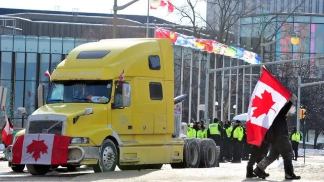ਕੋਰੋਨਾਵਾਇਰਸ ਸੰਬੰਧੀ ਨਿਯਮਾਂ ਦੇ ਵਿਰੋਧ ਵਿੱਚ ਟਰੱਕਾਂ ਨਾਲ ਜੁੜੇ ਕਾਰੋਬਾਰ ਵਿੱਚ ਸ਼ਾਮਲ ਲੋਕ ਅਤੇ ਟਰੱਕ ਚਾਲਕ ਲਗਭਗ ਇਕ ਹਫ਼ਤੇ ਤੋਂ ਧਰਨੇ- ਮੁਜ਼ਾਹਰੇ ਕਰ ਰਹੇ ਹਨ।