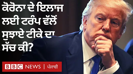 ਵੀਡੀਓ ਕੈਪਸ਼ਨ, ਟਰੰਪ ਦਾ ਦਾਅਵਾ ਜੀਵਾਣੂ-ਨਾਸ਼ਕ ਟੀਕੇ 'ਚ ਕੋਰੋਨਾ ਦਾ ਇਲਾਜ, ਪਰ ਸੱਚ ਕੀ? ਕੋਰੋਨਾਵਾਇਰਸ ਕਿਵੇਂ ਫੈਲਦਾ ਹੈ, ਇਸਦੇ ਲੱਛਣ ਕੀ ਹਨ ਅਤੇ ਬਚਾਅ ਦੇ ਤਰੀਕੇ