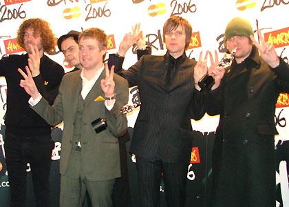 The Kaiser Chiefs backstage celebrating their triumphant night after collecting Best British Rock Act, British Group, and British Live Act as voted for by Radio 2 listeners