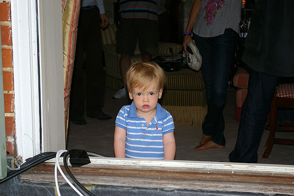 Little Noah watchig his dad doing the show through the window of the adjoining suite