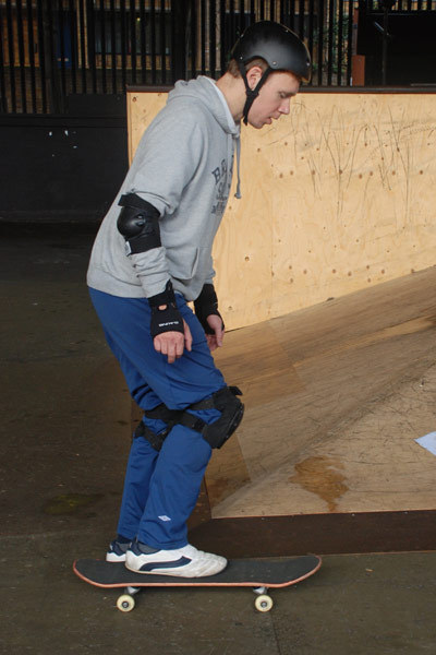 A rare photograph of Jonny upright on a skateboard