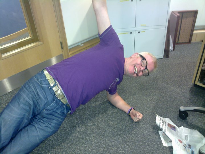 'Evans Side-Plank with Sharpie in Mouth' (2010, oils on canvas)