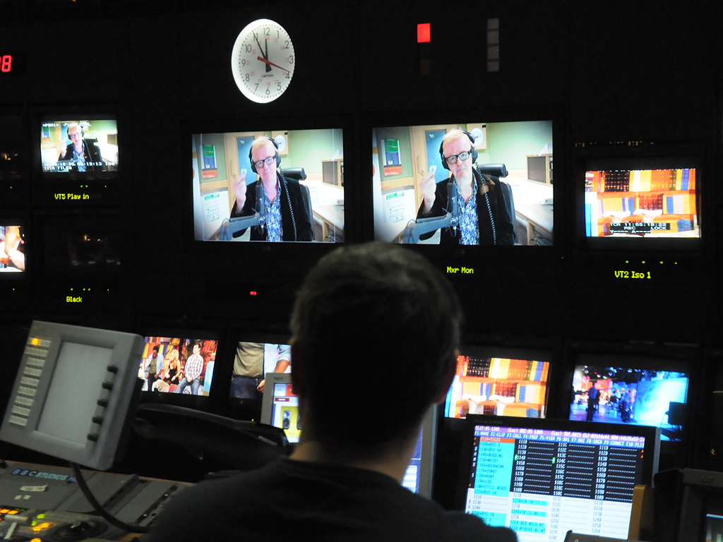 We snuck up to the gallery to see what goes on at the hub of the show. Here's the bit where they played out the VT that opened the show which features Chris in the Radio 2 studios getting ready for his Blue Peter appearance
