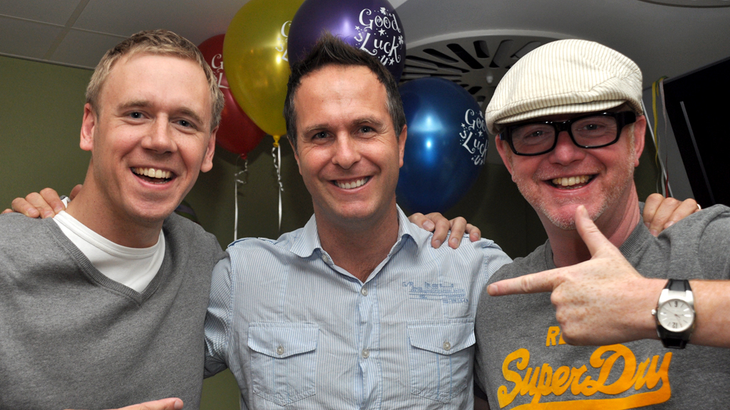 Cricket legend Michael Vaughan. In the studio. For Jonny Saunders's last day. Quality.