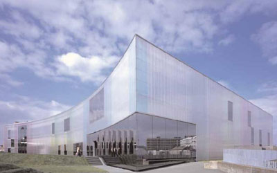 The main focal point was to create somewhere that dance could be centred and extended. Purpose-built for dance training, it is now the largest and best equipped contemporary dance school in Europe. The exterior appearance shifts according to the time of day, the weather conditions and the activities going on inside. By day, the semi-reflective, semi-translucent polycarbonate both mirrors the passing weather and allows the regular activity of the Centre - dance classes, rehearsals and workshops - to be semi-visible through the walls. By night, the Centre becomes a coloured lantern or beacon: light and movement will spill out, illuminating the surrounding public gardens along Deptford Creek and providing a vibrant new landmark for the locality.