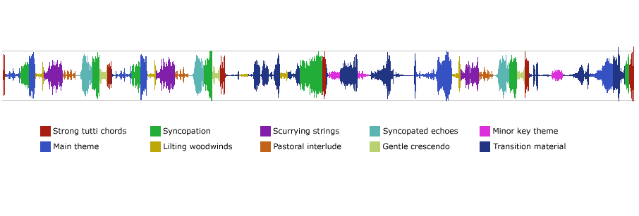 This analysis focuses on the first movement of the symphony, using waveform graphics from audio recordings to illustrate length, structure, dynamics etc.