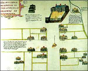 |  Thomas Raven's map of land division in Ulster, circa 1625. | The Irish were not forcibly pushed onto poor and marginal land but in some counties, although not all, English and Scots settlers did increasingly dominate the more fertile land.
