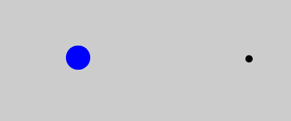 Cover or shut your right eye and look at the black dot on the right with your left eye. Move your head towards and away from the monitor. At a critical distance the white disc on the left will disappear. Notice that when the disc disappears you don't see a dark void or hole in its place. The region is "filled in" with the same light blue colour as the background. | |||