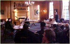 | Both parties discuss after the conclusion with Sir Franklin Berman QC. |