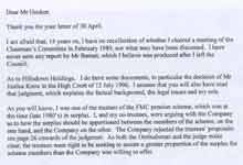 Barry Legg wrote a letter to Today explaining his defence on both the asbestos and the pensions affairs.